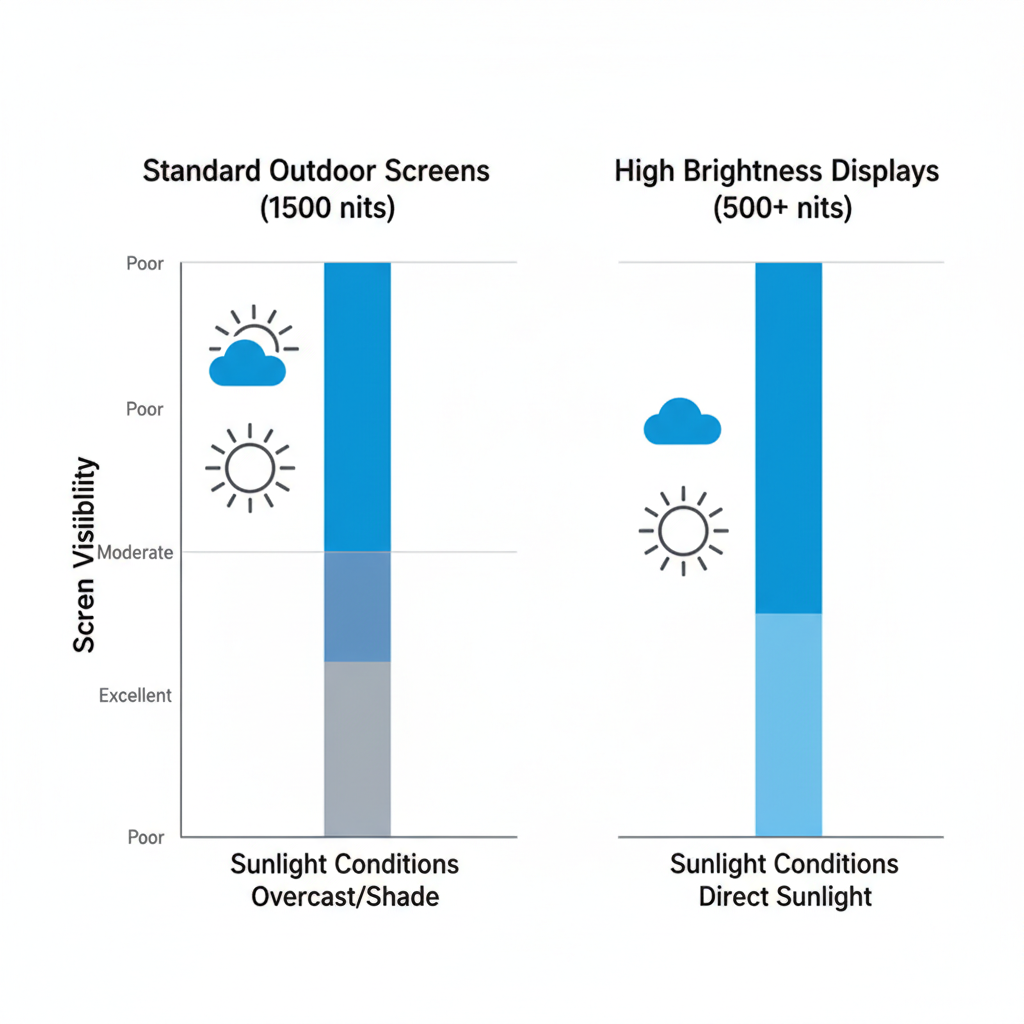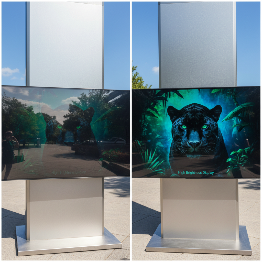Sunlight creates massive ambient light interference that competes with your screen’s light output, lowering perceived contrast until content becomes unreadable.  High Brightness Displays  utilize premium semiconductors to fight this interference, ensuring your marketing assets remain vivid despite harsh glare. Without these specialized components, your outdoor investment essentially vanishes when the sun reaches its zenith.